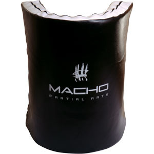 Curved shield design gives you more strike zones to accommodate combinations or multiple students. Curved trauma plate sandwiched between 4 inches of foam for superior shock absorption. Leather-grained vinyl cover with double-stitched seams. Bottom inside handle for arm with leading shoulder.